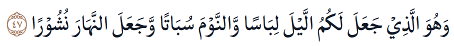 Dialah yang menjadikan malam untukmu (sebagai) pakaian dan tidur untuk istirahat. Dia menjadikan siang untuk bangkit berusaha.