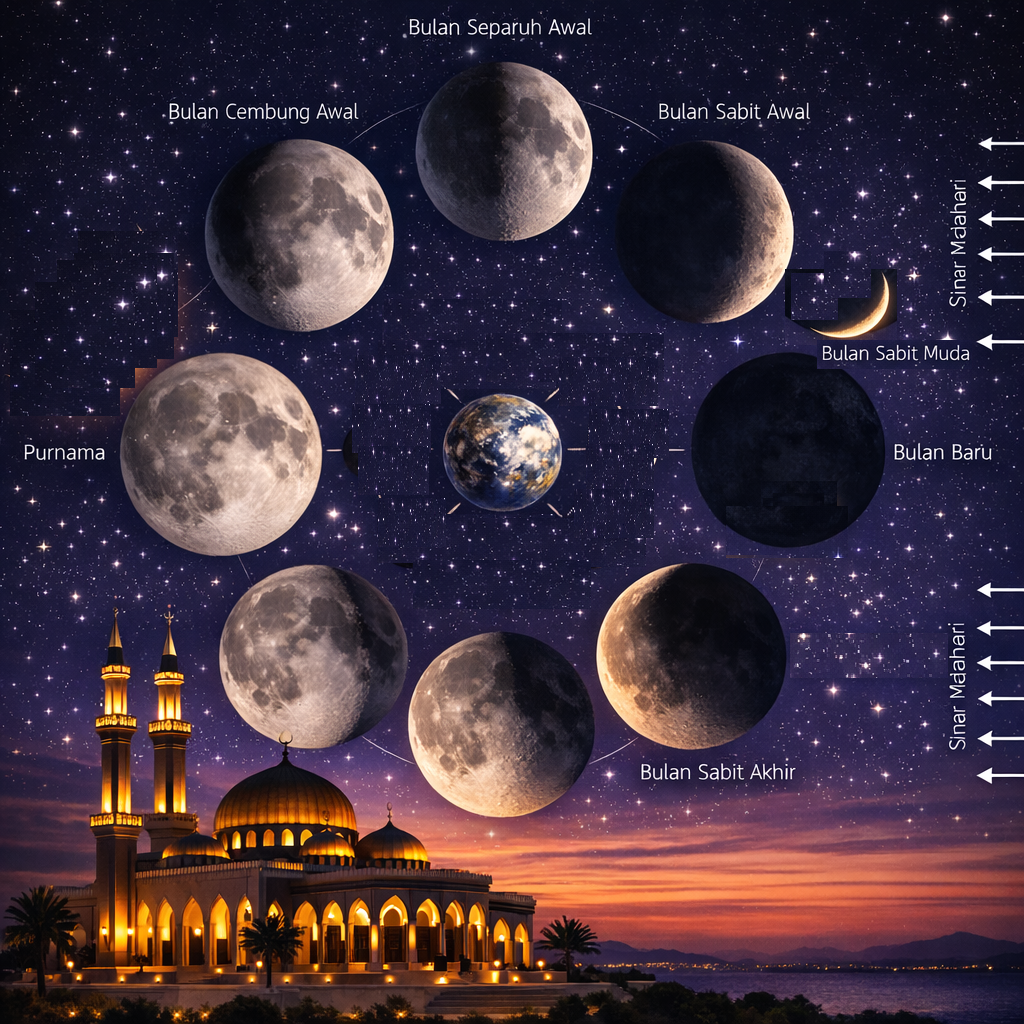 Fase-fase bulan ini sebagai tanda waktu bulanan yang bersifat global untuk seluruh manusia di bumi.